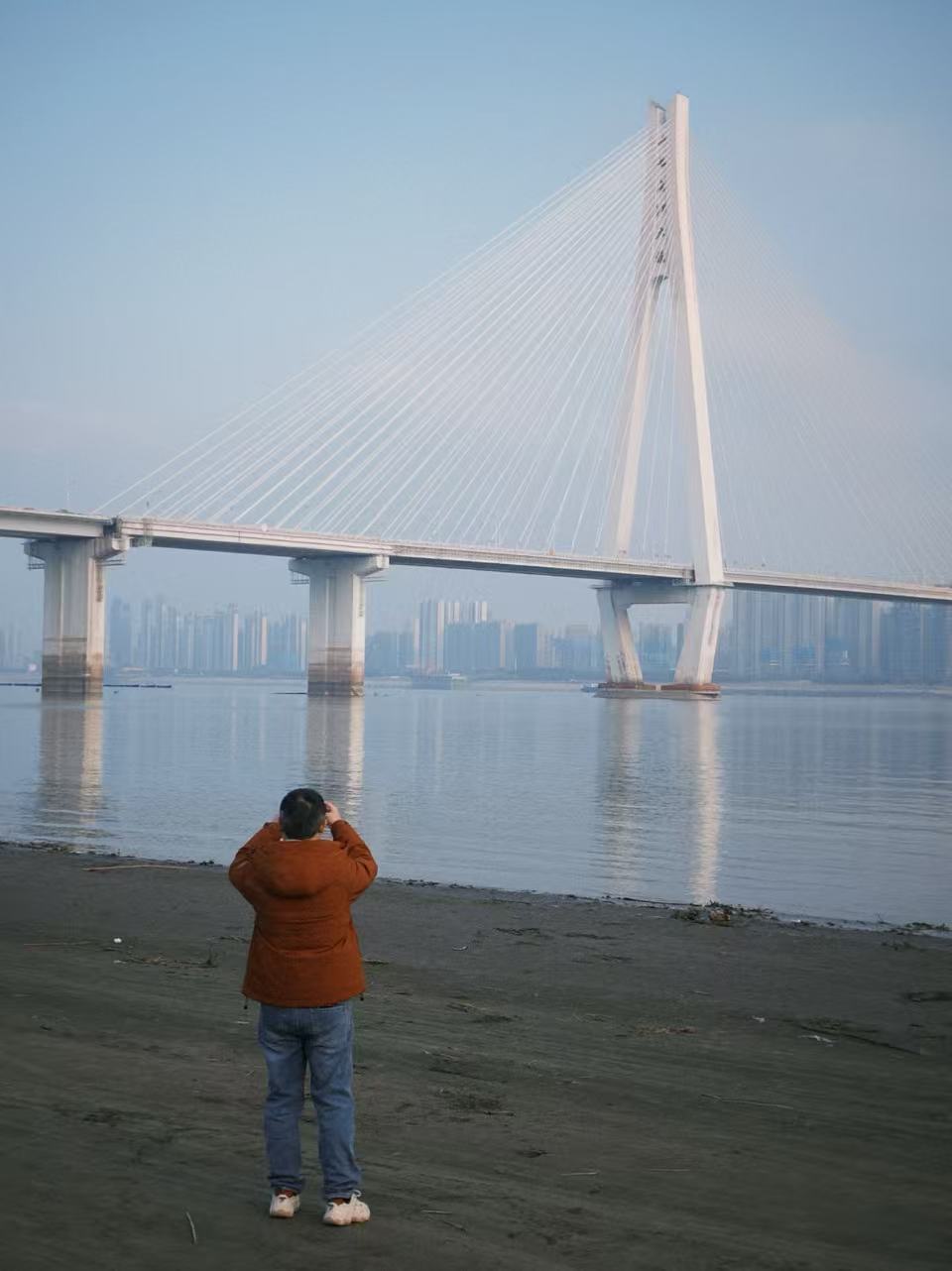 印完手印,自然是要把手上的沙子清理掉,我说我要去江边洗手,大家提建议带了水、纸巾擦、用手拍打。我说我就要去江边洗手,小福吐槽事多,湘云蹲在地上抬头吐槽我真矫情,我指着湘云说你再说一遍,湘云顿了一下但又说了一遍,然后我就去江边洗手了,小福抱着阿木狗跟上。果不其然,江边没有好地方让我蹲着洗手,但是有人搭了木板坐在上面钓鱼,于是乎我踩着木板洗了洗手。