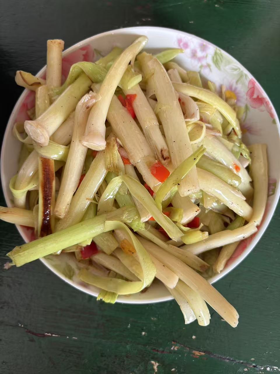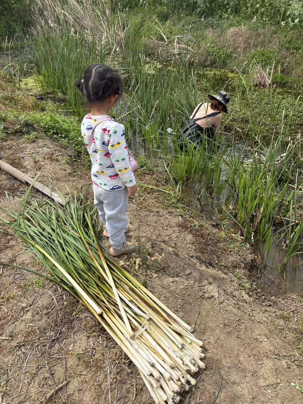 妈妈说要去河沟里拔点什么回来吃,我实在是不认识,也听不清到底是哪几个音,只知道是三个字,中间那个字是白字。它们刚被我妈从沟里拔出来时是下面左图的样子,炒成一盘菜时是下面右图的样子。